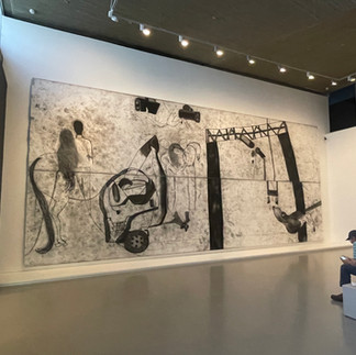 Maria Salem Mohamed, “Ana Hoon, I am Here”, 2019. Personal and collective narrative- a car crash, a wedding, the artists own handprints as if we were looking at a prehistoric cave painting. Maria is an Israeli Palestinian artist. There were several in the show, found this work the most interesting.