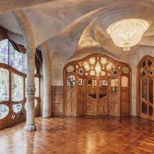 Back in Barcelona Casa Batlo was another one of Gaudi’s early projects a redesign of an already existing building from the late 1800s in 1904. It feels as though it captures nature just as El Capricho does though right in the center of a busy city. It has unusual tracery, irregular oval windows and flowing stonework. Even the staircases feel like they are flowing.