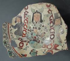 Some detail examples from different time periods including the wings (1989) you see in the first slide displayed above a 16th century wall, 17th century, and one in the bottom center art nouveau detail (late 19th century). One technique used in many tiles, especially the blue ones, is faience which comes from ancient Egypt. It was used to embalm bodies and they discovered that at high temperatures it turned into a glass like substance, hence could be used as a glaze.